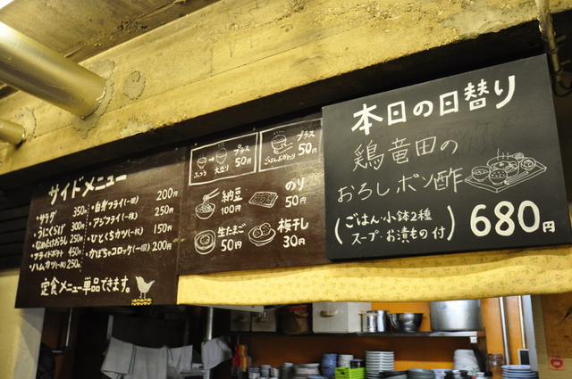| 料金・価格帯 | 日替わり定食 \680 鶏の唐揚げ定食 \700 さばの味噌煮定食 \750 さばの竜田揚げ定食 \730 豚の生姜焼き定食 \730 ハンバーグ定食 \780 エビフライ定食 \850 ごはん大盛 +\50 ごはんおかわり +\50 納豆 \100 生卵 \50 のり \50 梅干し \30 |