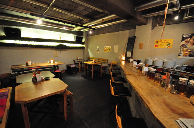 7割くらいのお客さんが十六穀米を注文しはるそうですが、テーブルにふりかけが常備してあったり、生卵がサイドメニューにあったりと、白ご飯派にも優しいお店です。
