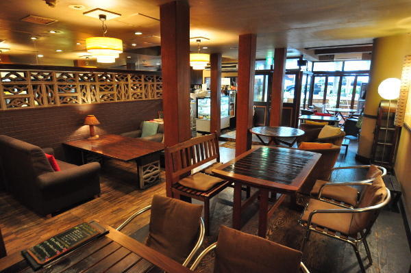 河原町通に面しているが、半地下のような感じで昼夜問わず落ち着いた雰囲気の居心地の良いカフェです。学生さんのグループやビジネスマンのお一人様が多い。ランチ、カフェ、ディナー、バーの要素を満たしているので、いつ、どんなメンツで行ってもアリなお店。