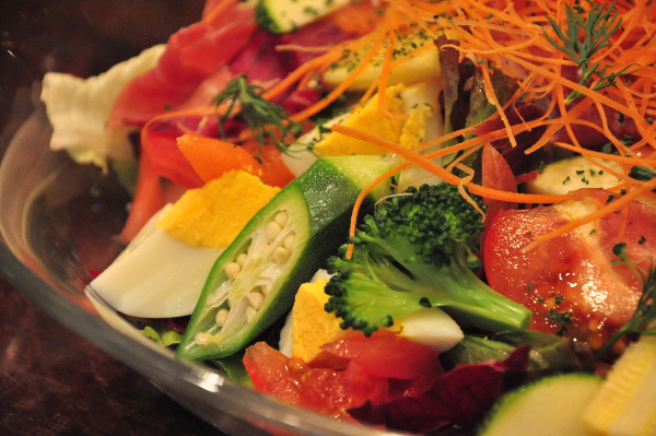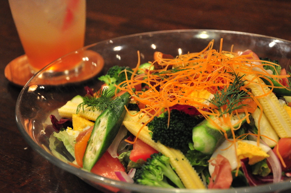 フードは23時ラストオーダーと、界隈では比較的遅めの入店でも、しっかり食事が摂ることができる。カロリーが気になる時間帯のご飯でも、具沢山のサラダや野菜のトマト煮などヘルシーなメニューも豊富。