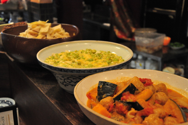 | 料金・価格帯 | おばんざいセット(3鉢) \1,000 筍のたいたん(季節もの) \500 なっぱたいたん \400 山菜天 \700 豆腐サラダ \500 麦ごはん \200 たまごかけごはん \400 とろゆばごはん \600 オムライス \800 味噌汁 \300 |
