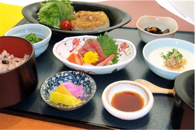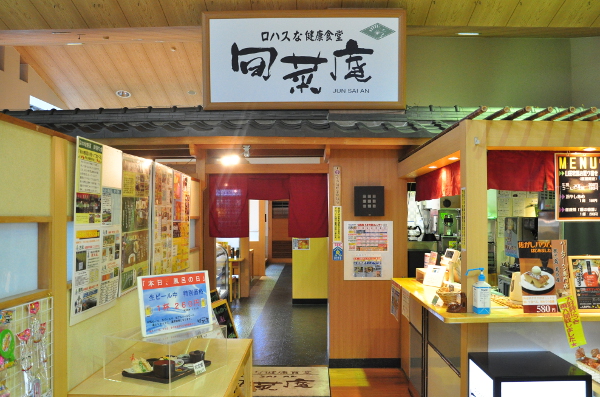 スーパー銭湯のなかにある、明るく清潔なレストラン。旬の野菜を使ったメニューが多く、定食や丼が充実している。城陽市の京たまご「茶乃月」を使ったこだわり卵のぶっかけごはんがオススメ。また、全ての定食でご飯が白米と十六穀米から選べるのも嬉しいサービス。
