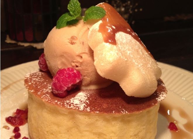 バターとメープルシロップ、とろとろの生クリームがふんわり生地にしみこんで、一口頬張ると思わず笑みがこぼれます。