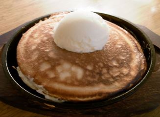 温かいホットケーキと冷たいアイスクリームの組み合わせが絶妙なんです。