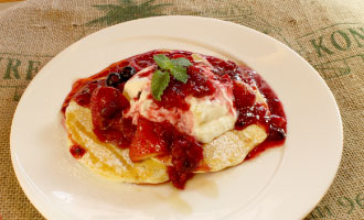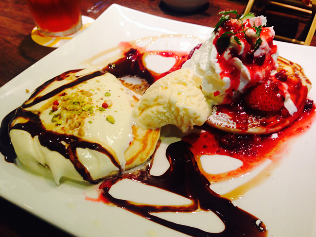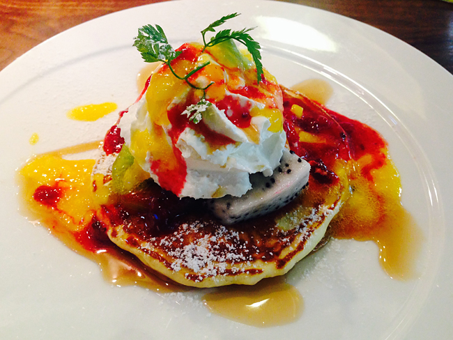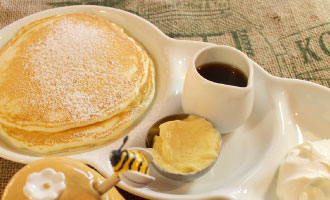 パンケーキはオリジナルバニラバターがついてくるプレーンもいいし、たっぷりトッピングが乗ってくるアレンジメニューもおすすめ。