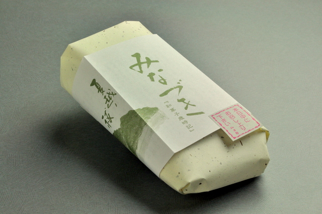黄色が目にも鮮やかな河内晩柑を用いた水菓子。販売期間は5月~8月のみ。冷やせばゼリーとして、半日ほど凍らせればシャーベットとしていただけます。ほろ苦さの後に甘さが広がる、柑橘の爽やかさを楽しめるひと品です。