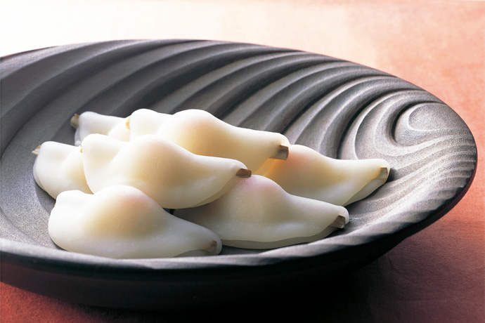 味噌餡と甘く味付けしたごぼうを柔らかな求肥で包んだ生菓子です。「花びら餅」とも記し、見た目の華やかさもあり、京では新年を祝う和菓子として親しまれています。