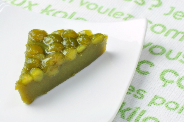 定番の白水無月には北海道小豆を、抹茶味にはうぐいす豆をのせています。
