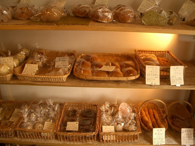 自家製天然酵母を使ったパン屋さん。レーズン・米麹・ライ麦で起こした自家製酵母100%で、約30種類のパンが生まれます。レーズン酵母を使った月替わりのベーグルも人気。また、店内を彩る瓢箪ランプも必見です。