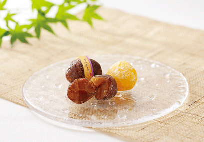 代表銘菓「栗阿彌(りつあみ)」は大粒の渋皮栗に丁寧に蜜を含ませた心づくしの逸品です。