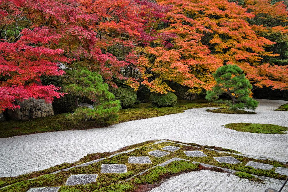 枯山水庭園と池泉回遊式庭園の紅葉は、本当に見事!