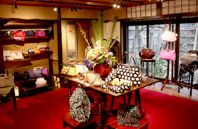 職人の手仕事によって作られるがまぐちのお店。大正時代の英文学者である厨川白村(くりやがわ・はくそん)旧宅を改装してできたモダンな町家が印象的。お気に入りの布を持ち込んで、がまぐちのセミオーダーメイドもできます。