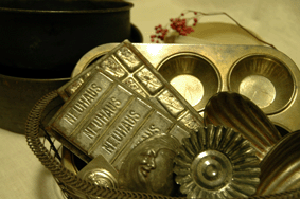 ケーキと雑貨の小さなお店。ケーキ型や絞り袋の口金、刷毛などの道具も取り揃えています。