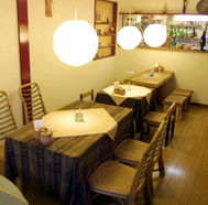 靴を脱いで上がった2階では、ゆっくりと落ち着いた空間で手づくりのスロヴェニア料理がいただけます。。旬の野菜やハーブをたっぷり使った料理は、あっさりとして食べやすく、スロヴェニアのワインとも相性ぴったりです。
