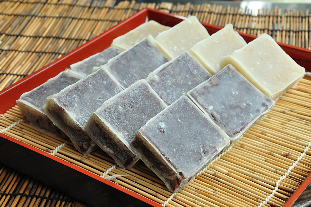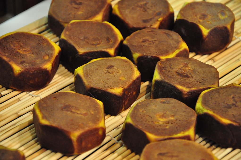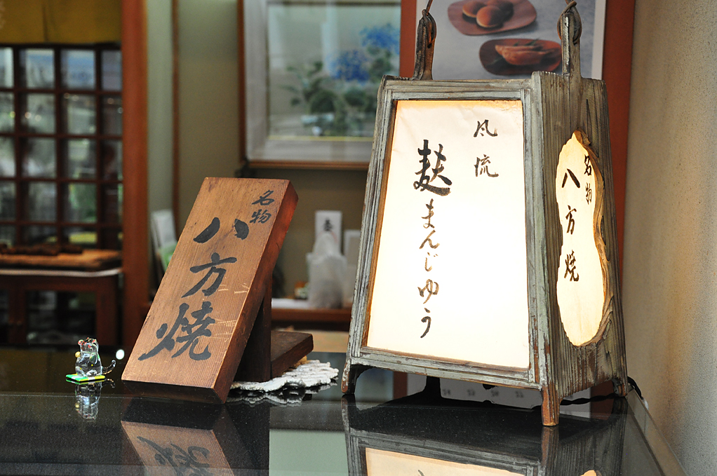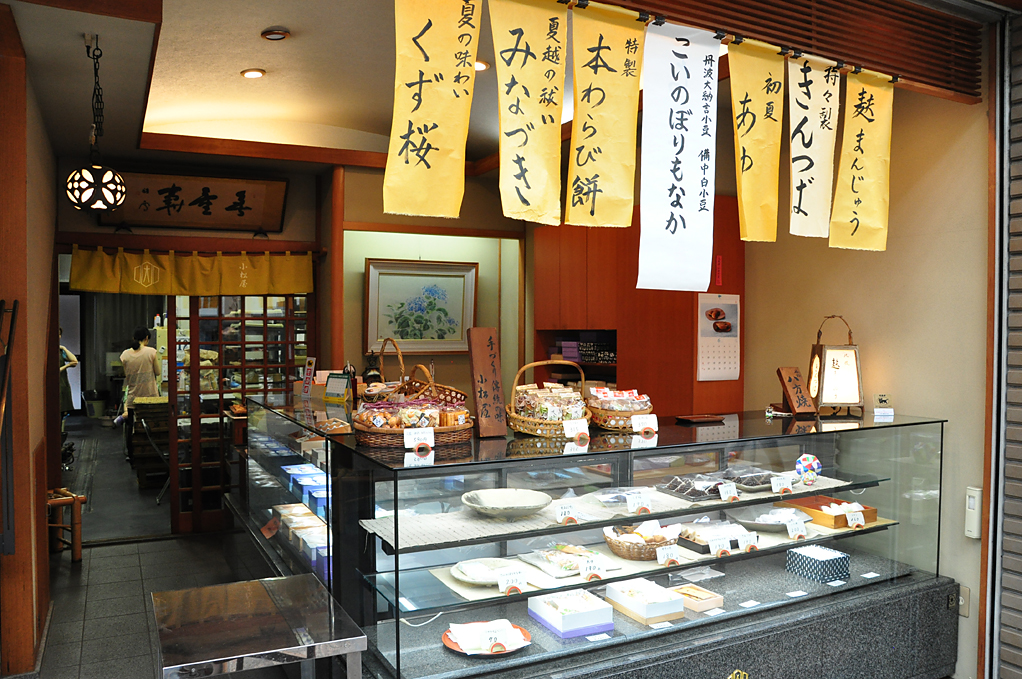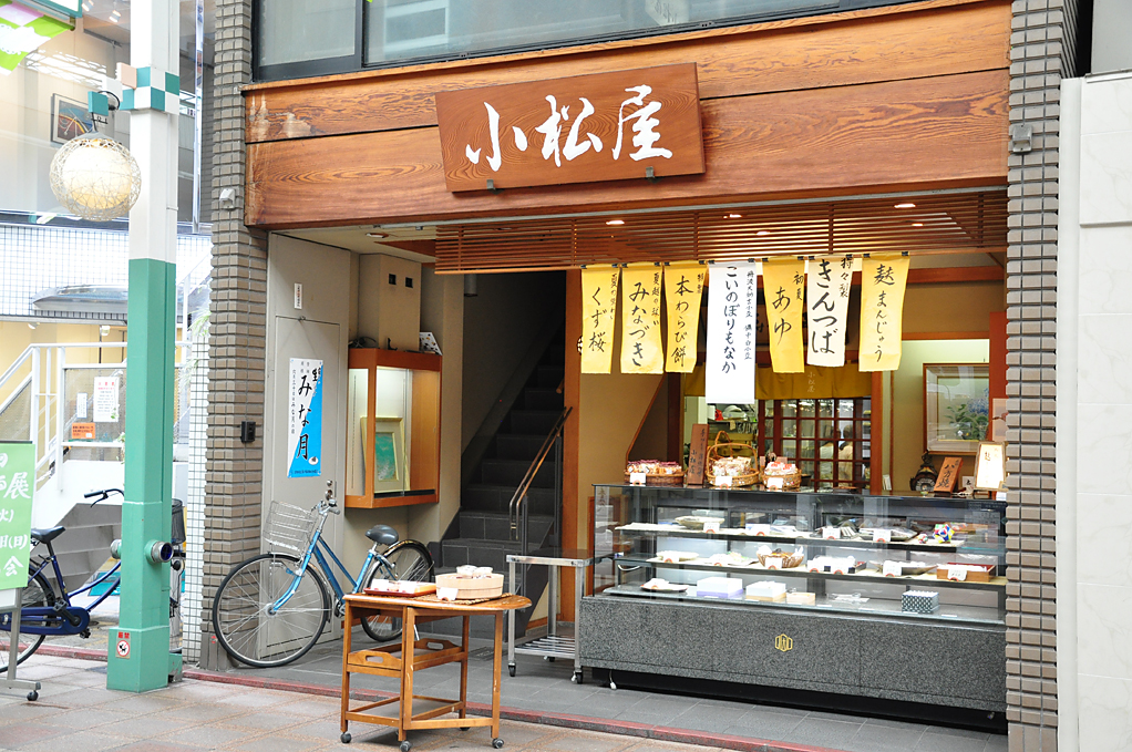 大正元年創業。屋号の「小松屋」は、初代が石川県小松から上洛したことに由来する。亀甲形を意味する縁起のよい「八方焼」や通年販売される「やきいも」が人気のお店。