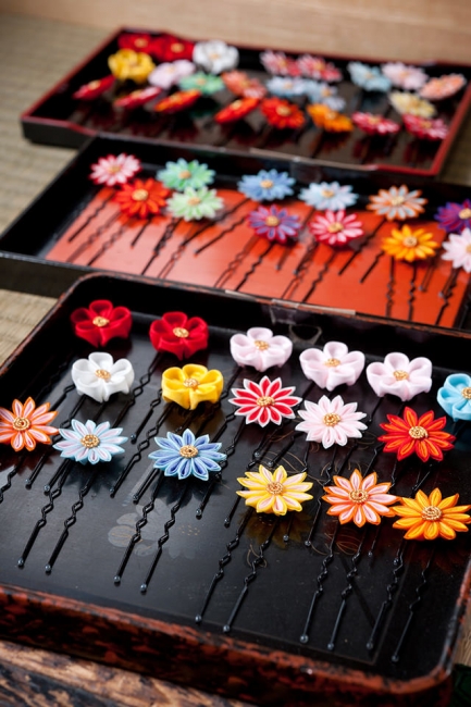 江戸時代末期、舞妓さんの髪飾り専門店として創業。現在も舞妓さんの花かんざしを手作りしている、唯一のお店です。七五三や成人式用のかんざしも販売しています。