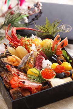 ホテル内の京料理店「嵐亭」が腕を奮った一段重。彩り鮮やか、“ほんまもん”の繊細な味わいです。
