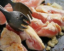 京都駅から徒歩圏内の石焼専門店。それぞれの席に熱された大きな天然石が用意されており、その上で鶏肉を中心として、海鮮やお肉・野菜などをじっくりジューシーに焼き上げます。