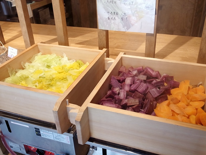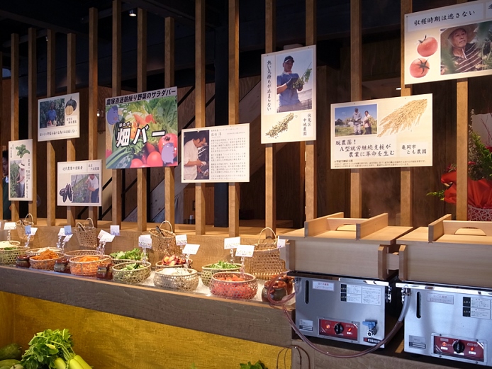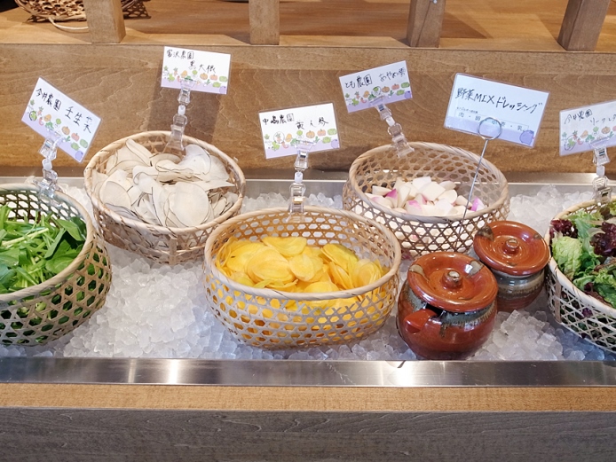 都野菜(京都産有機、無農薬、減農薬野菜)をたっぷりいただけるバイキング食堂。その日採れたものをその日に食べることができます。お野菜のほか、おばんざい・ごはん・スープ・カレーなどメニューも豊富です。
