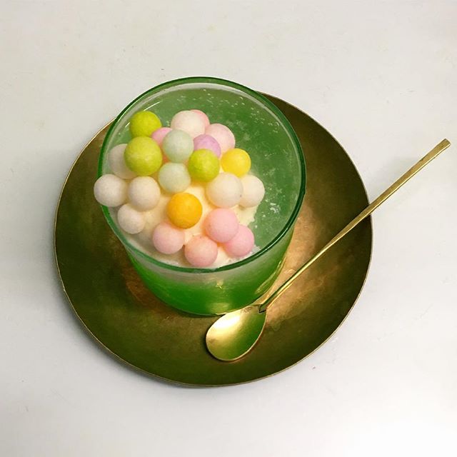 みどり色のソーダに色とりどりの「おいり」が加わって、女子の心をくすぐる逸品となっています。