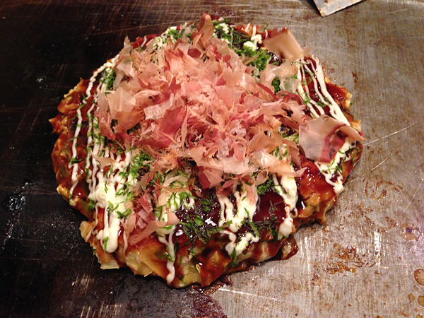 山芋たっぷりのオーソドックスな豚玉の下に、焼きそばの麺が追加されたメニュー。おすすめ!