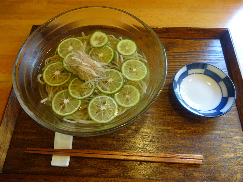 暑い時期は「すだちそば」がおすすめです。
