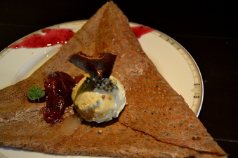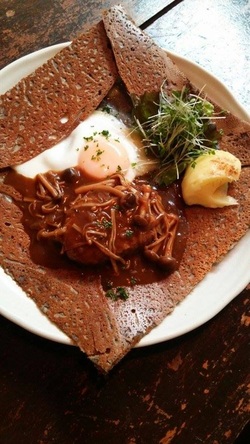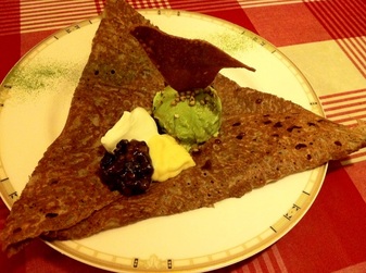 フランス語でソバを意味するさらざん(sarrasin)は、ガレット(そば粉のクレープ)を中心に、そばを使ったお菓子、ドリンクなどが楽しめます。