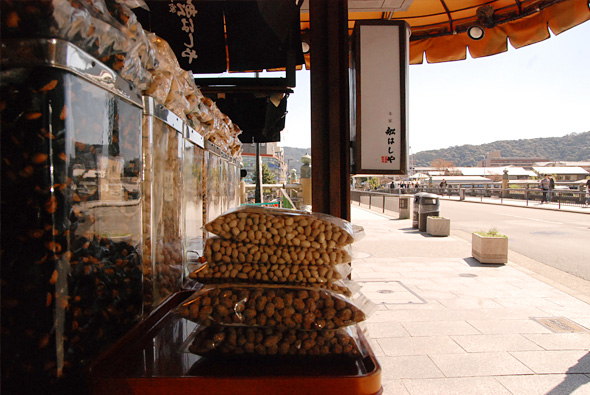 明治創業の三条大橋のたもとのあられ・おかき・豆菓子店。