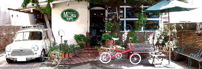 ショップの名前であるMoku2+4とは、Moku(木/モク)が自然を象徴する木を意味し、自転車(2wheels)と自動車(4wheels)を表しています。単なる移動手段としてだけでない、もっとポリシーある自転車をお探しの方にオススメのお店。