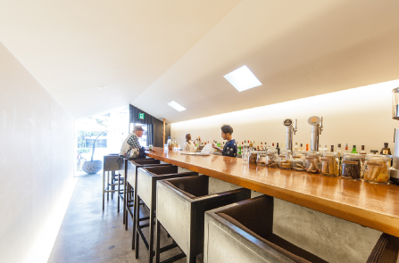 細長いトンネルのような店内は、カウンターでも奥のソファ席でも時間帯を問わずゆっくりと寛げます。