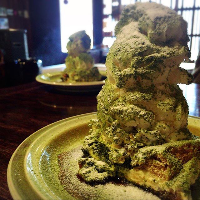 アイスクリームもどーんと乗っていて、抹茶が贅沢にふりかけられています。