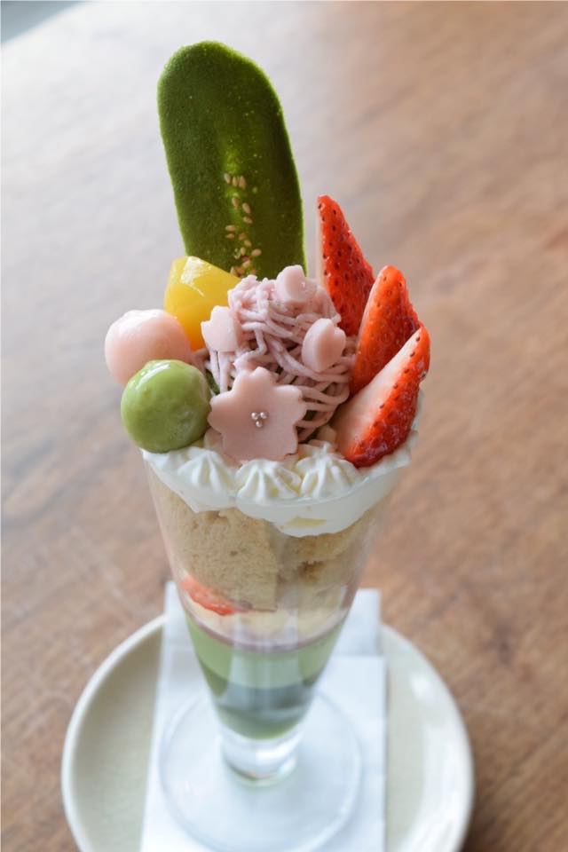 桜餡のモンブラン、桜シフォン、抹茶のチュイール、苺…などを豪華に盛りつけた春限定のパフェです。白玉や練りきりも入っているので、まるで上質な和菓子を食べているかのよう。「京都らしさ」を存分に味わえます。