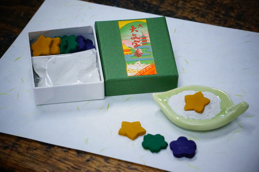 京都・三条の町屋の並ぶ通りに構えるお香屋さん。天保5年に創業した老舗。「五感の全て」で香りを楽しめるよう、見た目も楽しいお香は雅やかな香り。