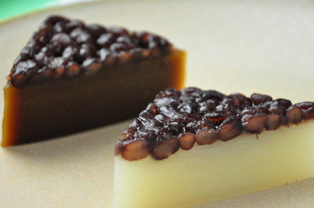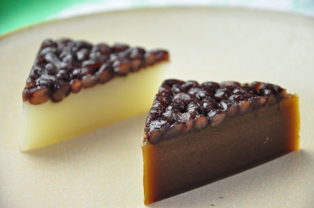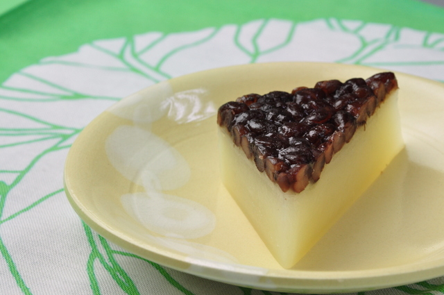ピシッと鋭い三角形のういろうに、キメの整った小豆の層。