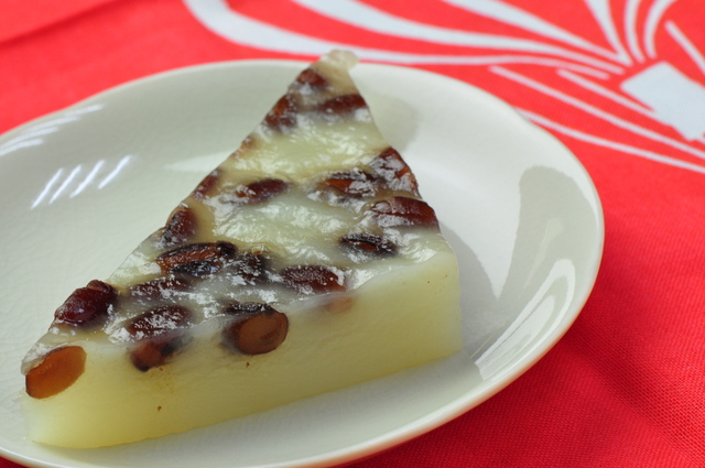 ぎっしり小豆の水無月が多い中、こちらの水無月は「散らした」程度の控えめなタイプになります。