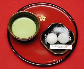 今から400年あまりの昔の話。天正年間に、京都・北野天満宮の縁日になると決まって現れる一人の老人がいました。境内の出店の者に小さな餅を5、6個売ると、どこへともなく去っていきます。その上品な味が次第に評判になり、その老人に名を問うと、「河内屋長五郎」と名乗りました。九州平定を終えた豊臣秀吉は、天正15年(1587年)10月北野天満宮の松原で大茶会を催すことになり、市中に高札を掲げて上下の別なく参加を呼びかけ、長五郎も茶屋を出店したところ、秀吉に大層気に入られ、「長五郎餅」の銘を賜わりました。本店は、北野天満宮のご門前、中立売通り北側に所在し、持ち帰りと共にお茶席も設けられています。また、天神さんの日(毎月25日)だけ北野天満宮東門内の境内茶店を開けられ(正月1日から4日、2月3日の節分祭、梅苑シーズンの土日も営業)、その日には境内で昔ながらの茶屋の風情を味わうことができます。