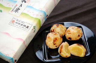 総本家若狭屋から暖簾分けされた和菓子屋、ニ條若狭屋。代表銘菓は「家喜芋」。丹波山芋(つくね芋)の皮で餡を包んだ焼菓子です。