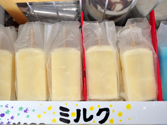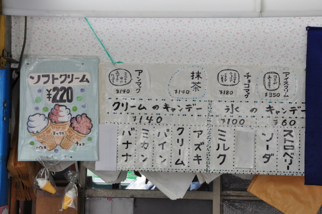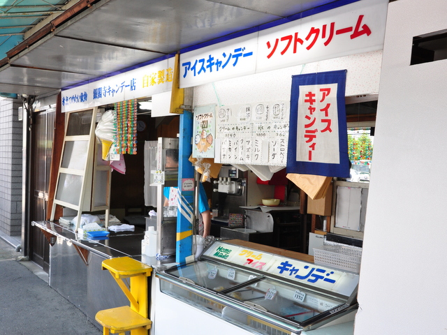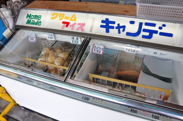 小さな子供がお小遣いで買えるくらいの良心的なお値段で、手作り感溢れるアイスキャンデーがザクザク揃っています。夏は冷やし飴やパインジュース、ちょっとアイスが寒い季節には生地に黒ゴマが散った「大文字焼き」という名の大判焼きなど、童心にかえってあれこれ買い食いしたくなるお店です。