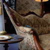 英国アンティーク家具としての経年変化による味わいは残しつつ、ソファ座面のクッションやファブリックやチェストの引き出しや扉などはメンテナンスされているので使い心地の面でもコンディションの良い家具が揃う。
