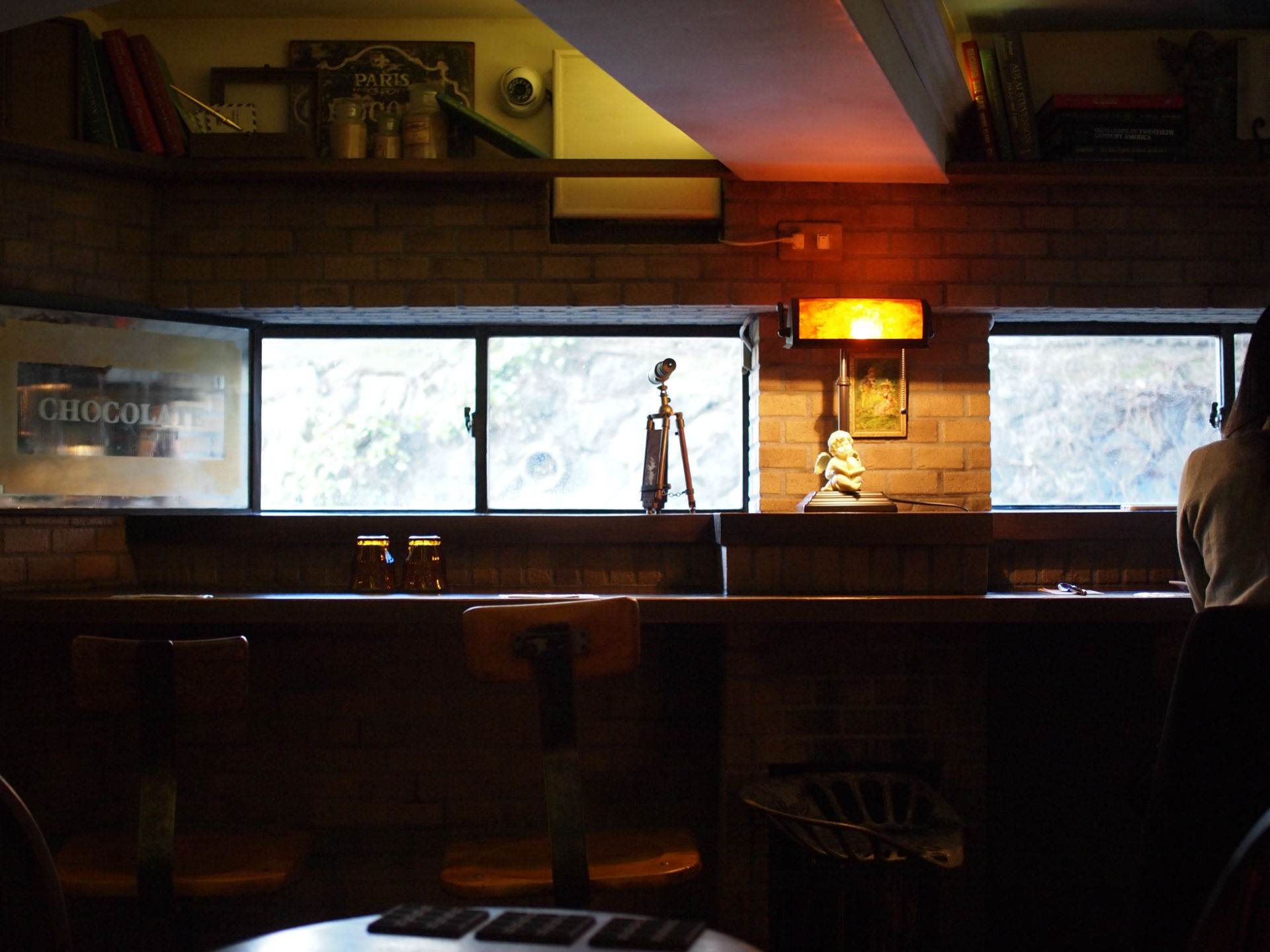 天井が低く照明が薄暗いことで、隠れ家感が増しています。